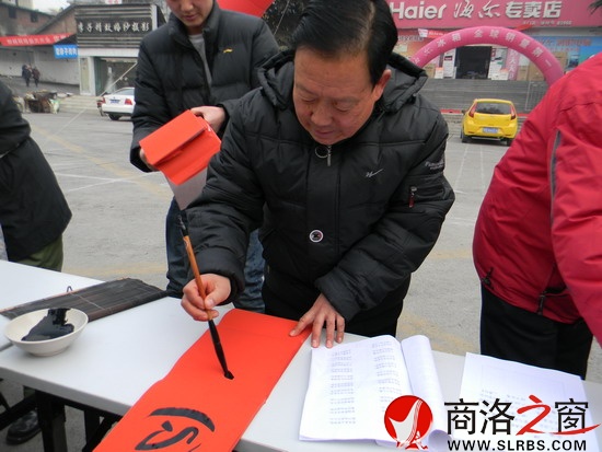 本網訊(記者 崔旭紅 實習生 史明怡)2011年1月25日,由商洛市體彩管理站和商洛市政協書畫院共同舉辦的春聯義寫活動在中心廣場舉行,市政協書畫院院長魏振中和其他九位省書協會長會員等書法名家揮毫潑墨,為過往群眾精心書寫著一幅幅春聯。