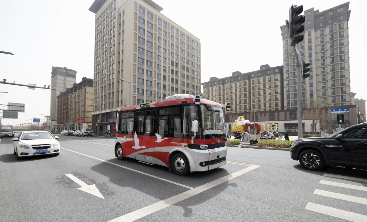 △2024年3月28日,智慧公交車在雄安新區街道上行駛。