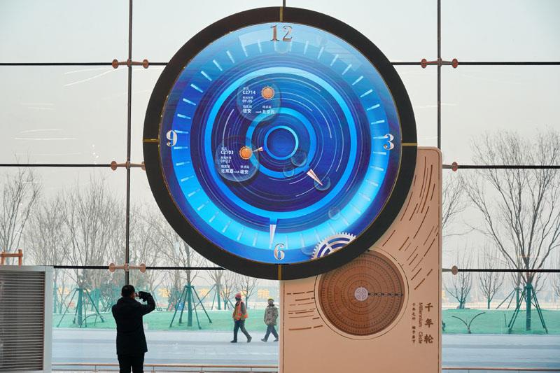 雄安新區雄安站候車廳,一座青銅輪盤吸引著往來旅客的目光。輪盤底座上,鐫刻著它的名字——“千年輪”。