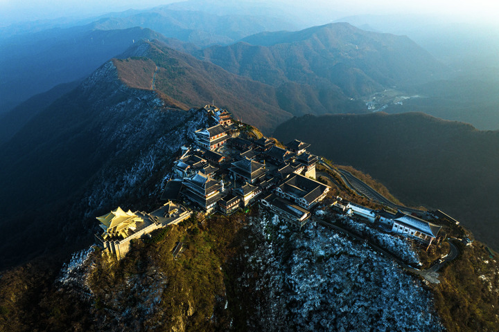 循著山勢往上,蜿蜒曲折的盤山公路兩邊,層巒疊翠,云海蒸騰,杜鵑灼灼,古木參天。公路盡頭,視野陡然開闊,一座佛寺金頂在云霧中若隱若現,恍若仙境。寺院入口,雕工精細的青石門楣上刻著“大慈恩寺”,兩側是“漢東地闊無雙院”“楚北天空第一峰”的聯語。這座寺院與武漢寶通禪寺同源共脈,卻鮮少張揚。