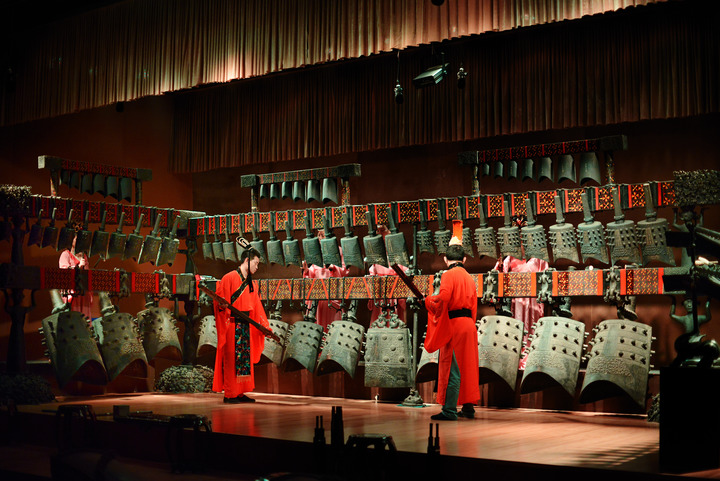 隨州博物館內的編鐘樂舞演奏。在湖北省博物館南館東側的“曾侯乙”展廳里,三層八組65件青銅編鐘原件至今僅演出過3次,每一次都轟動中外。李文軍攝
