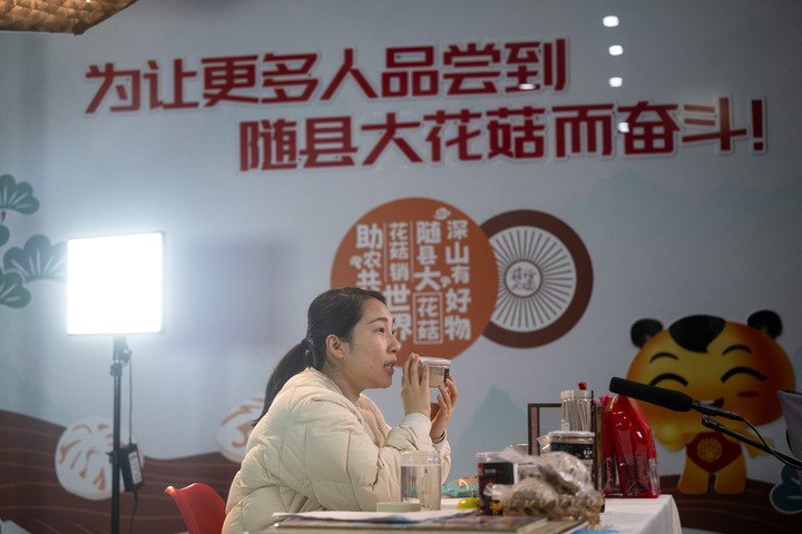 隨縣大花菇電商直播現場。新華社記者 肖藝九攝
