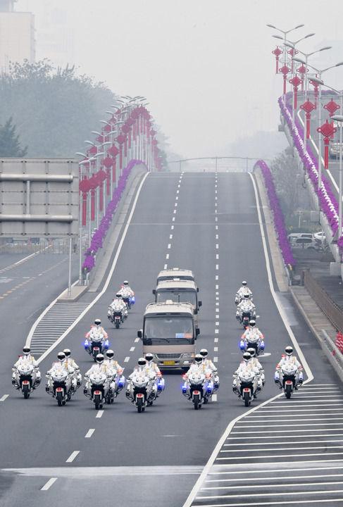 2024年9月29日,中華人民共和國國家勛章和國家榮譽稱號頒授儀式在北京人民大會堂隆重舉行。這是國家勛章和國家榮譽稱號獲得者集體乘坐禮賓車,由國賓護衛隊護衛前往人民大會堂。新華社記者 高潔 攝