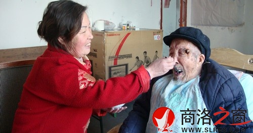 1月9日早上8點多,寒風陣陣,家住商州區迎賓路社區背街一組的李慧哲匆匆忙忙地來到樓下,買了一碗豆腐腦提上了樓,來到三樓的房間里,扶起了躺在床上的外公,麻利地給外公穿上上衣,靠床坐好,然后端起床邊的豆腐腦碗,邊給外公喂,邊和外公聊天,“張嘴啊,熱不熱,今早上是豆腐腦,給你換換口味。”雖然耳朵已背得聽不清,也很難說出一句話,看著孫女的笑臉,老人還是笑著,配合地吃著。十多分鐘后,一碗飯喂完了,李慧哲給外公換上干凈的尿布,叮囑幾句,就又忙著開始收拾屋子了。多年來,每天早上,李慧哲都是在這樣的情景中拉開自己一天的序幕。