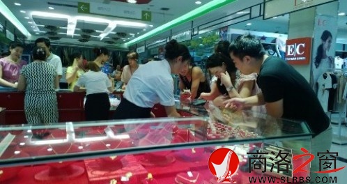 商洛日報訊(記者 張瑞)由于金價持續下跌,而且黃金首飾美觀大方、寓意美好并有收藏價值,黃金首飾成為今年情侶之間贈送禮物的首選。圖為近日年輕情侶在一金店選購黃金飾品。