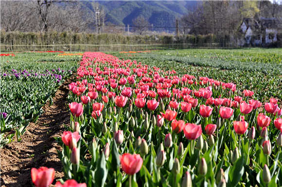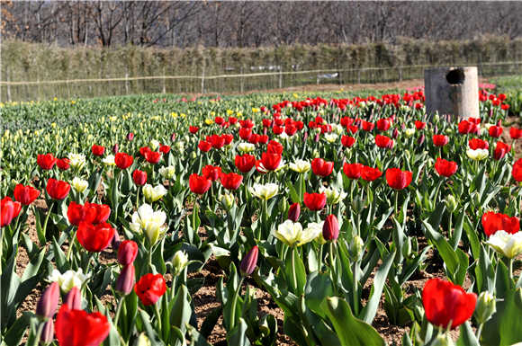 作為與玫瑰花相媲美的珍貴花種,郁金香自然是不可缺少的啦,占地30畝的郁金香園,種植了9種不同花色的郁金香,色彩斑斕,馨香四溢,美不勝收。