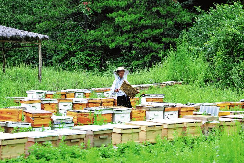與鮮花為伴的,還有大量的蜜蜂。中華蜂作為黑彰村的主要產(chǎn)業(yè)之一,目前全村共發(fā)展900箱。油葵等農(nóng)作物與蜜蜂形成了優(yōu)勢(shì)互補(bǔ),為黑彰村2018年脫貧摘帽提供了保障。雖是炎炎夏日,田間地頭卻依然有村民辛勤勞作的身影,正是勤勞樸實(shí)的黑彰人靠著自己的努力,讓生活燦爛如花、甜如蜜。