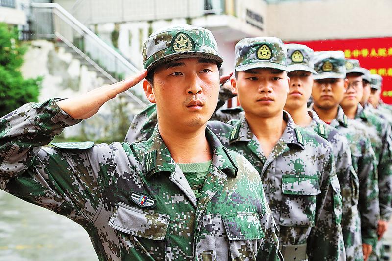 7月27日,記者在牧護關(guān)鎮(zhèn)民兵輪訓(xùn)基地看到,柞水縣100名民兵正在進行訓(xùn)練,炎炎烈日下,高溫酷暑中,民兵們頂烈日、戰(zhàn)高溫,克服種種困難,扎實開展訓(xùn)練。柞水縣民兵預(yù)備役應(yīng)急連三排十班班長水洋介紹說:“我在2017年9月退伍,在部隊中曾經(jīng)當過副班長。但沒有指揮過這么龐大的隊伍。在這方面對我個人來說也是能力的錘煉。訓(xùn)練可以讓新民兵從自身改掉些不良習(xí)氣,現(xiàn)在的青年都個性比較強,但是通過在準軍事化訓(xùn)練中發(fā)現(xiàn),他們適應(yīng)能力特別強,能夠迅速轉(zhuǎn)變、迅速進步。”
