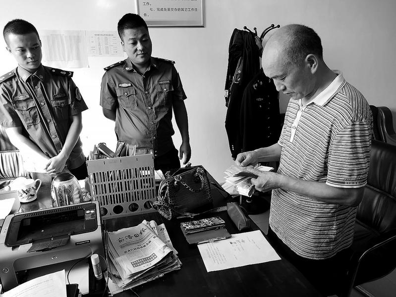 隨后稽查員核對身份信息后,讓失主汪老先生清點財物并當(dāng)面歸還所有錢物。