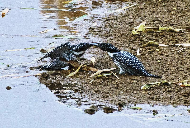 在拍鳥的過程中,很多情況都讓張生超覺得很稀奇。去年某日在丹江河里,張生超看到一只冠魚狗(一種鳥)站在一支柳樹枝上,嘴里發出一種奇怪的叫聲。他正納悶這鳥為啥在那里怪叫的時候,另一只冠魚狗飛了過來。經過觀察,張生超發現這兩只冠魚狗原來是雌雄對鳥。兩只鳥兒從樹枝上落到沙灘上之后,嘴對嘴親吻。張生超總共為此拍了200多張片子,估計用了20多分鐘。鳥兒嘴分開之后,在水上追逐,在空中嬉戲,上下翻飛。張生超不由得驚嘆,這種只有5年壽命的小小鳥兒,竟然有如此美好、熱烈的一生。