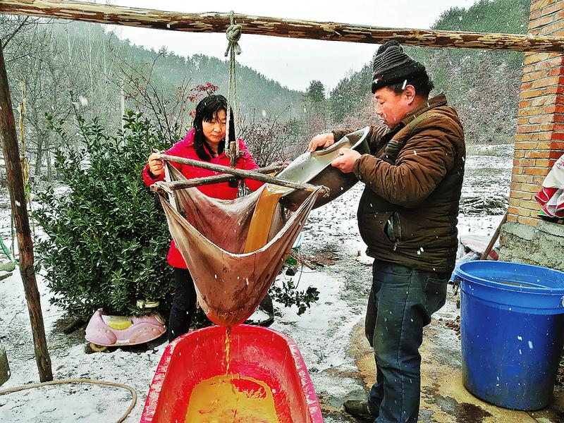 以往,當地村民都是在家里把橡仁涼粉做好后,騎上自行車去寺坡、古城、三要、靈口等周邊集鎮上售賣,常榮俠沒有買車之前也和她們一樣騎自行車走街串巷叫賣橡仁涼粉,自從她有了車以后,便擴大作坊規模,開上車把自己加工好的橡仁涼粉送往縣城及周邊集鎮的大小酒店,過去靠自行車賣橡仁涼粉一年最多只能收入幾千元錢,2017年她開車做同樣的生意,一年收購橡仁1噸多,出售橡仁涼粉盈利3萬多元。