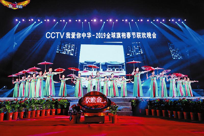 1月7日晚9時許,首都北京。在由CCTV、一路格桑花旗袍聯盟和最牛傳媒(香港)有限公司舉辦的CCTV我愛你中華-2019全球旗袍春節聯歡晚會上,來自一路格桑花旗袍聯盟協會商洛錦瑟分部的28名佳麗款款登臺,她們身穿天藍色旗袍,撐著紅紙傘,在商洛山水風光視頻背景和彩燈的變幻中,伴隨著歌曲《秦嶺最美是商洛》的優美旋律,婀娜多姿地隨著節奏換步,一張張笑臉如花綻放,一動一靜間,盡顯商洛女性的柔美和優雅,演出現場爆發出了陣陣熱烈的掌聲。