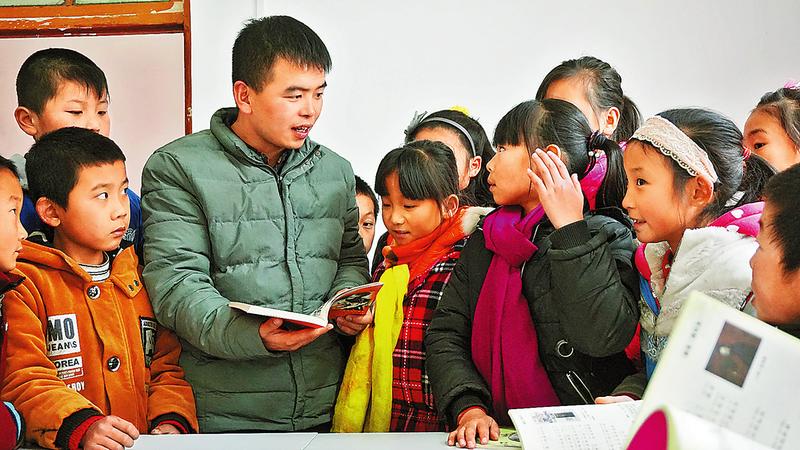 雖然已經過去了近十年時間,呂宏兵依然記得2009年9月5日到石坡鎮黑山小學報到的情景。學校距離鎮上20多公里,那天天氣陰沉,他拎著行李搭乘班車趕到學校時,初秋的大風已稍顯寒意。他仔細打量著這所學校,教學樓是多年前的三層小樓房,而旁邊集辦公和住宿于一體的教師辦公室就顯得很破舊,低矮的磚房,昏暗的光線,都讓呂宏兵記憶深刻。然而,這些都抵不上呂宏兵看到孩子們見到新老師時的眼神,他把那眼神解讀為“對知識的渴求”。