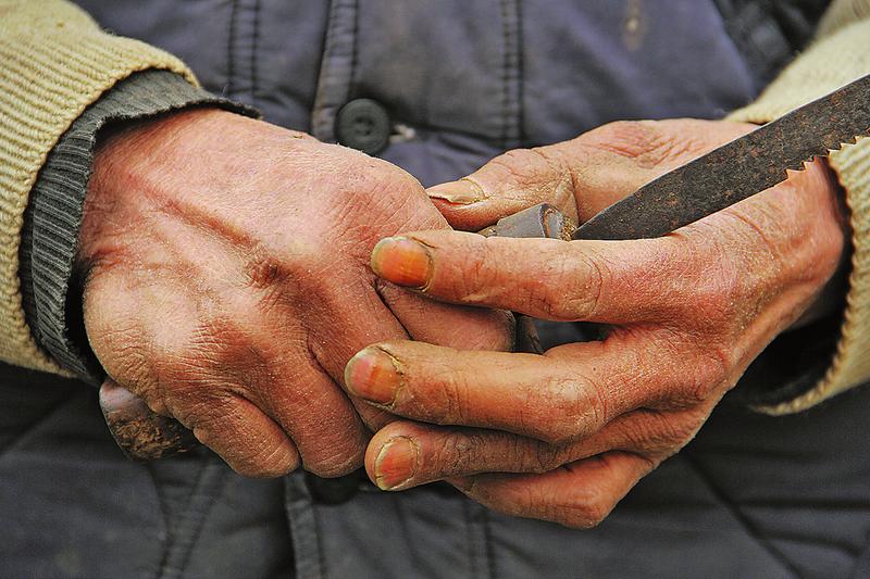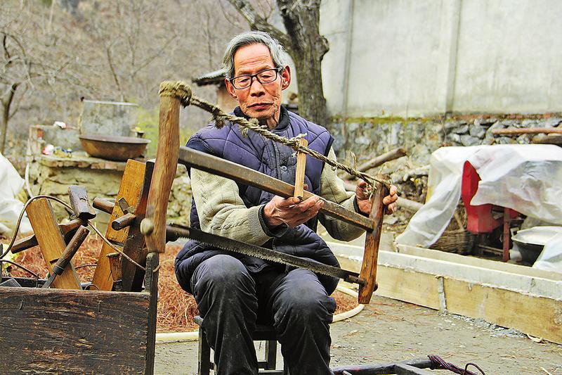 前幾年,王福情在尋柴火時,左眼讓木渣子劃傷,又不幸染上白內障,前后做了3次手術,還是沒有恢復多少,現在,他左眼幾乎看不到光亮。失去了視力,意味著失去了審料的“慧眼”,雖然他對那一套制作工藝爛熟于心,雖然近幾年還有人請他做風箱,但他都一律回絕:不做了。“一是眼睛確實不行了,二是按照現在的工價,做一天大工得150元,算上材料費,那一個風箱要賣到幾百塊,才能把本錢收回來,這么貴的價錢,誰買呢?”