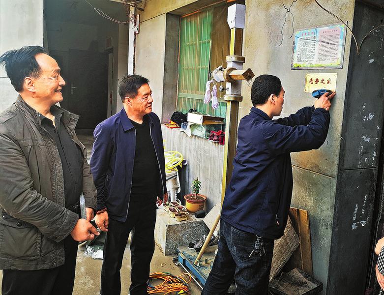 4月16日,商州區(qū)和平社區(qū)工作人員為退伍軍人家庭上門安裝“光榮之家”榮譽牌。據(jù)了解,和平社區(qū)登記在冊的退伍軍人家庭有273戶,現(xiàn)在已經(jīng)安裝100多戶。(記者 王孝竹 攝)