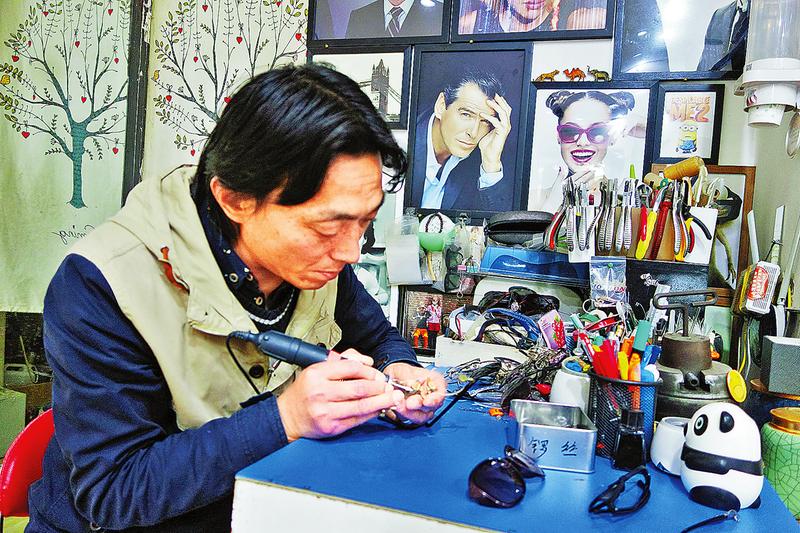 這是一家普通的眼鏡店,與別的眼鏡店比并無不同,裝修、陳設甚至略顯寒磣。店主張兆理既是老板,也是推銷員、驗光師、配鏡師,更是店里的清潔工、服務員。