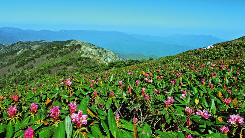 近期,生長在2000多米海拔的高山杜鵑花競相開放,花期只有1個月,目前正是游客賞花的最佳時段。這個時節(jié),穿越秦楚古道,杜鵑花次第開放,呈現(xiàn)白色、粉紅色、紫色等多彩色澤,它們一朵朵依偎著,一束束簇擁著,在暖風的輕撫中,露出微微笑意。人們徜徉在杜鵑花海中,放飛心情,盡情領(lǐng)略大自然的秀美風光。