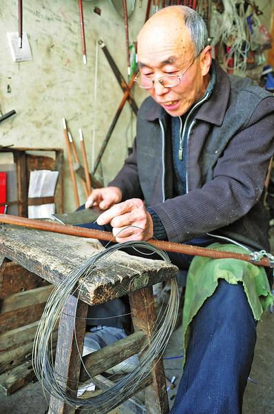 據(jù)魏寬琪介紹,他們魏家三代人一直以釘秤為生。1960年前后,他的父親魏西海辦起了私人秤鋪,從事釘秤生意。1968年,初中畢業(yè)的他就學(xué)會了這門手藝,跟著父親在家里釘秤。2013年,31歲的兒子魏龍子承父志接了他的班,他就過起了含飴弄孫的悠閑日子。然而,令他沒有想到的是,去年7月份兒子嫌收入低放棄了這門生意,到浙江湖州打工去了。不得已,他又重操舊業(yè),拾起了自己的老本行。
