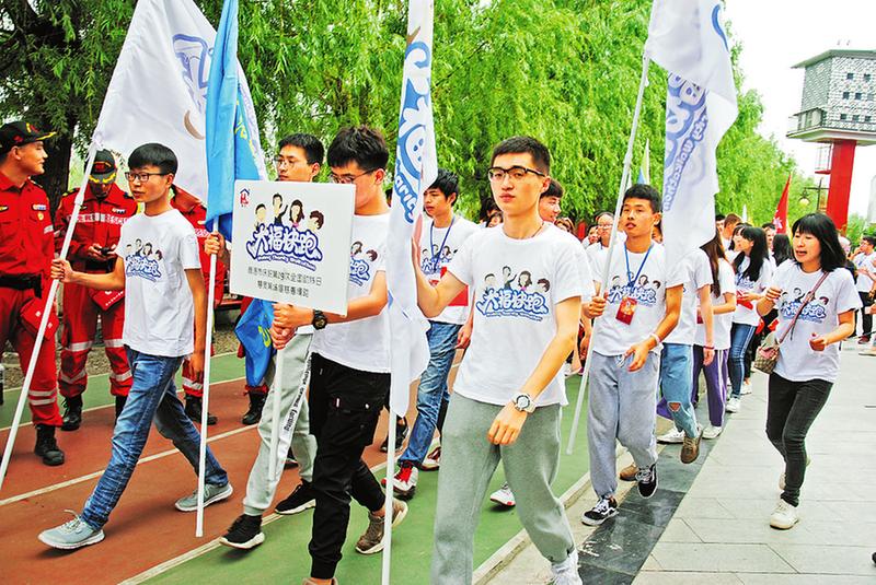 最后,所有前來參加活動的志愿者與殘障人士一起進行了“大福快跑”公益行走活動,沿路宣傳助殘知識,50多支志愿者隊伍形成了一道亮麗的風景線。