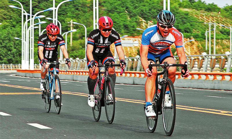 張勇克對騎行達到一種癡迷的程度,目標也從休閑鍛煉轉為運動競技。他說,自己的第一輛自行車就花了3000多元,現在又換成了一輛山地車。每天,張勇克堅持騎行50公里,一周保證一次長距離騎行。為了適應競技,張勇克用上了專業競技鎖鞋和鎖踏,在適應鎖鞋過程中,他摔了好幾跤。“賽車是高速競技運動,摔跤是不可避免的,如果懂得技巧就能降低受傷程度。”張勇克說,一次他在一處拐彎處,為了躲避對面駛來的拉磚車,一時失控,在摔倒瞬間他迅速翻了個跟頭,才避免了受傷。