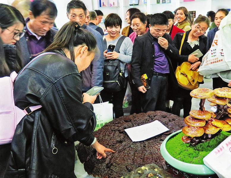 “蜂巢蜜營養特別豐富!”“請來品嘗我們的雙山紅茶!”“這靈芝直徑得有一米吧?”置身第二十六屆中國楊凌農高會鄉村振興暨脫貧攻堅展館(C館)商洛展館內,參展商推介產品聲、嘉賓咨詢和贊嘆聲不絕于耳,館內熱鬧非凡。