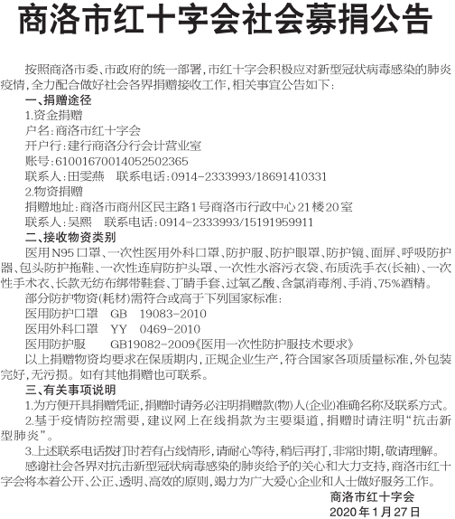 本報訊(王廣偉 李治軍) 新型冠狀病毒感染的肺炎疫情防控阻擊戰打響以來,商南縣全方位系統化筑牢筑緊疫情防控網,全力保障群眾身體健康和生命安全。 縣上按照突發公共衛生事件I級響應要求,第一時間關閉滬陜...