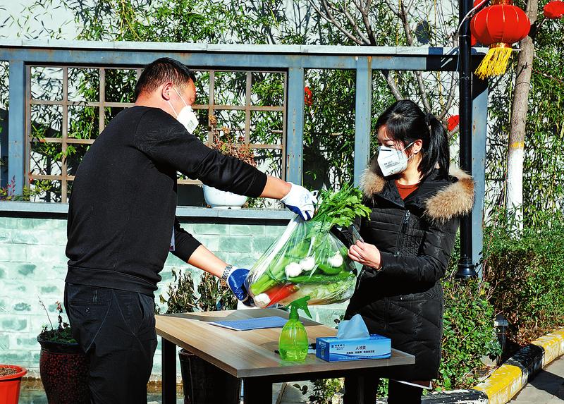 二月十二日,市區(qū)融城國(guó)際小區(qū)的二百二十四戶業(yè)主每戶領(lǐng)到了物業(yè)贈(zèng)送的一份新鮮蔬菜,每份包含白菜、芹菜、紅蘿卜、辣椒、黃瓜、小蔥、大蒜、生姜八個(gè)品種,讓宅在家里的業(yè)主感受到了實(shí)實(shí)在在的服務(wù)。(記者 王孝竹 攝)