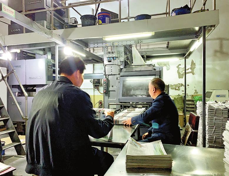 正月初三,晚飯過后,印報車間負責人和當班的其他8名工人戴好口罩,經過測量體溫符合標準后,依次進入車間。晚上8點,第一組人員全部到崗,沒有一人缺席。負責人王勝利說:“從那天起,大家連續工作,一直堅守在生產一線。”