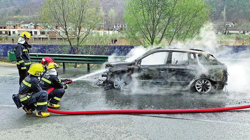 “接到群眾報警后我們迅速趕到現場,當時車輛已經開始燃燒,側道上不時還有車輛繞行,情況十分危急。當班巡查員一邊通知消防和救援車輛,一邊在沿途設置警戒區,疏導滯留車輛。”商州西路政中隊巡查人員許磊向記者說道。