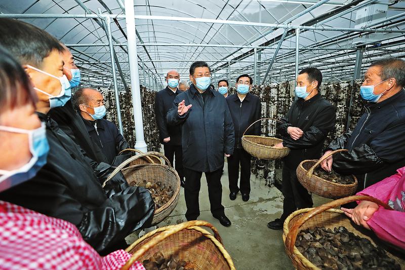 4月20日至23日,中共中央總書記、國家主席、中央軍委主席習(xí)近平在陜西考察。這是4月20日,習(xí)近平在商洛市柞水縣小嶺鎮(zhèn)金米村智能聯(lián)棟木耳大棚,同村民親切交流。(新華社記者 鞠鵬 攝)