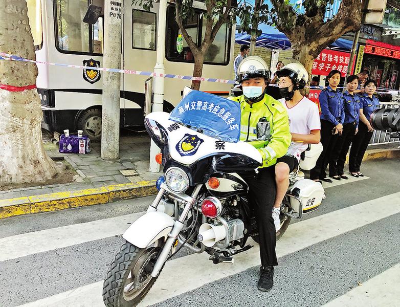 市交警支隊商州大隊民警為考生提供交通應急服務(方方 攝)