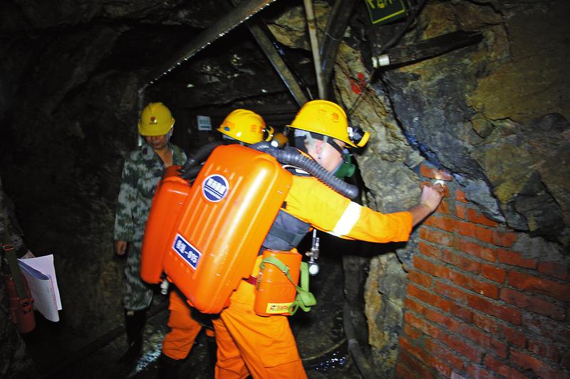 背負(fù)著 20 公斤的裝備走完 1000米的礦洞, 隊員汗流浹背 。