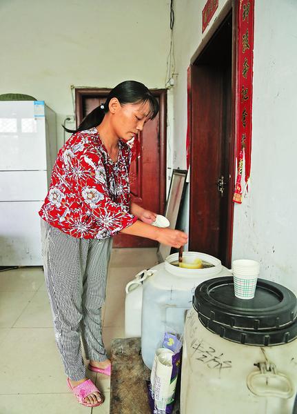 王義慧察看蜂箱防雨情況(趙有良攝)