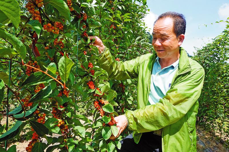 李向民查看五味子生長情況
