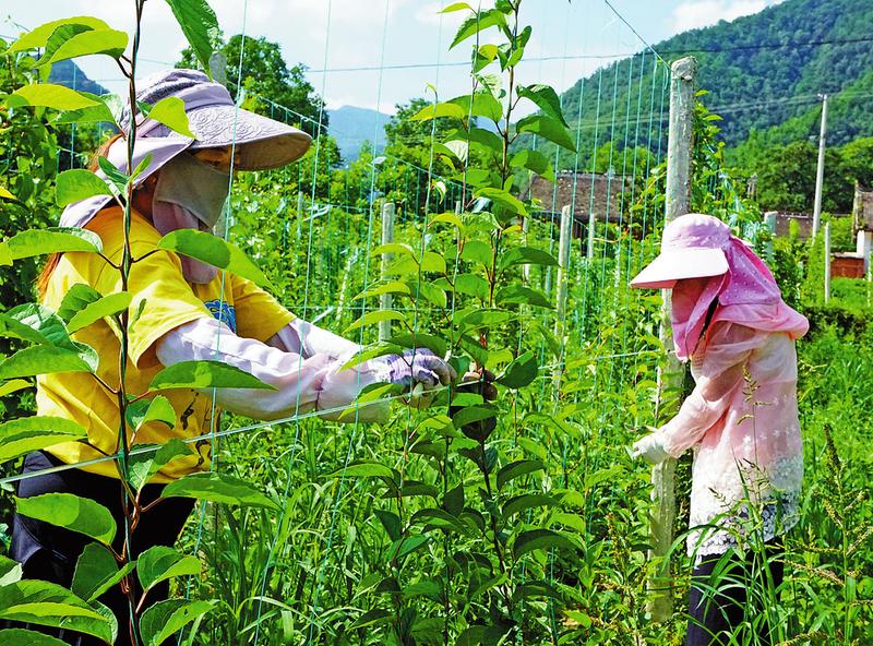 工人在五味子基地科管