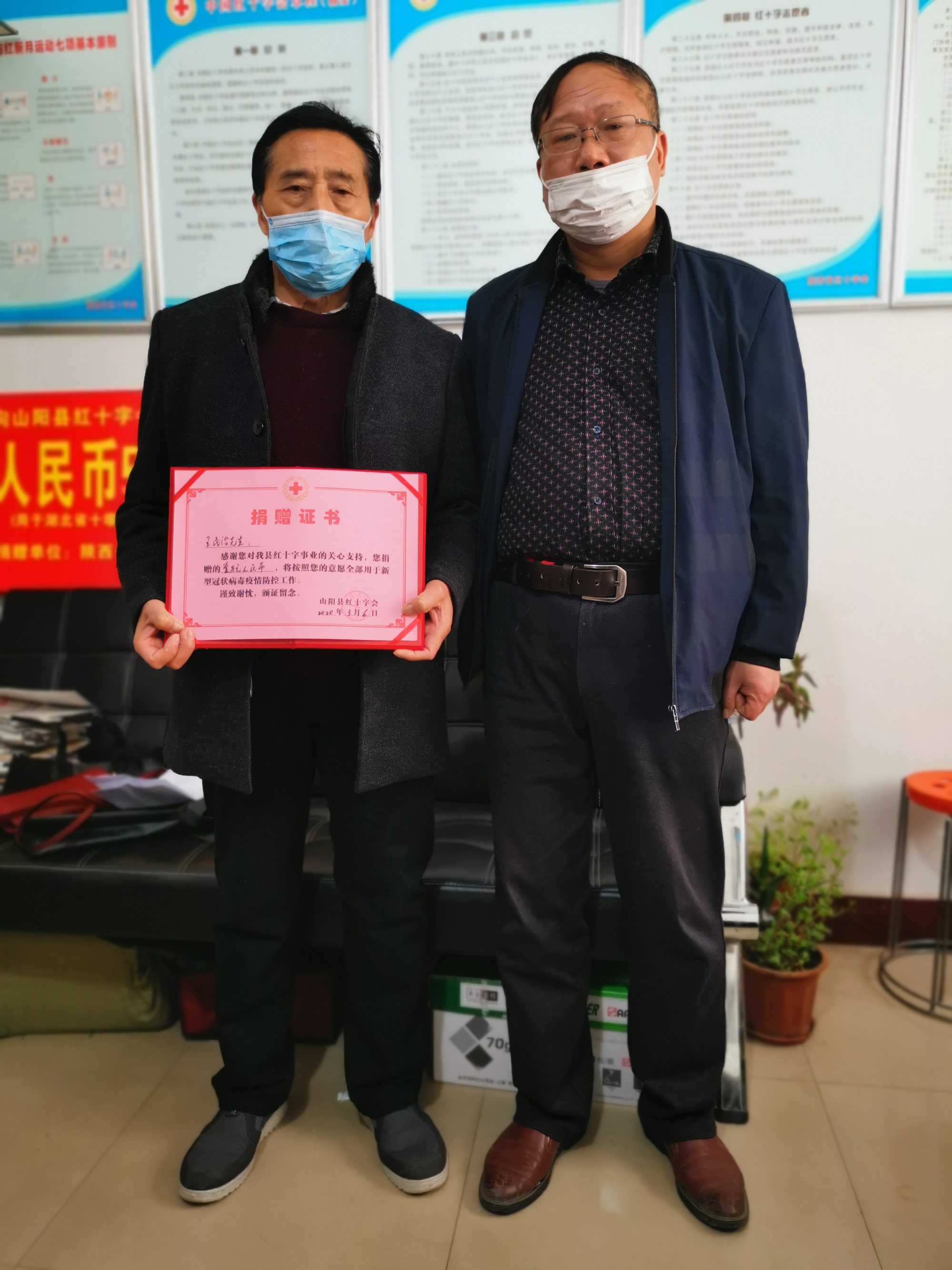 在看到汶川大地震、舟曲泥石流、玉樹地震的報道后,他都以最快的速度,向打工所在地的紅十字會、慈善組織多次捐款。2020年3月初,全國吹響抗擊新冠肺炎疫情號角后,他又果斷將兒孫們孝敬他的1萬元全部捐給山陽縣人民醫院。