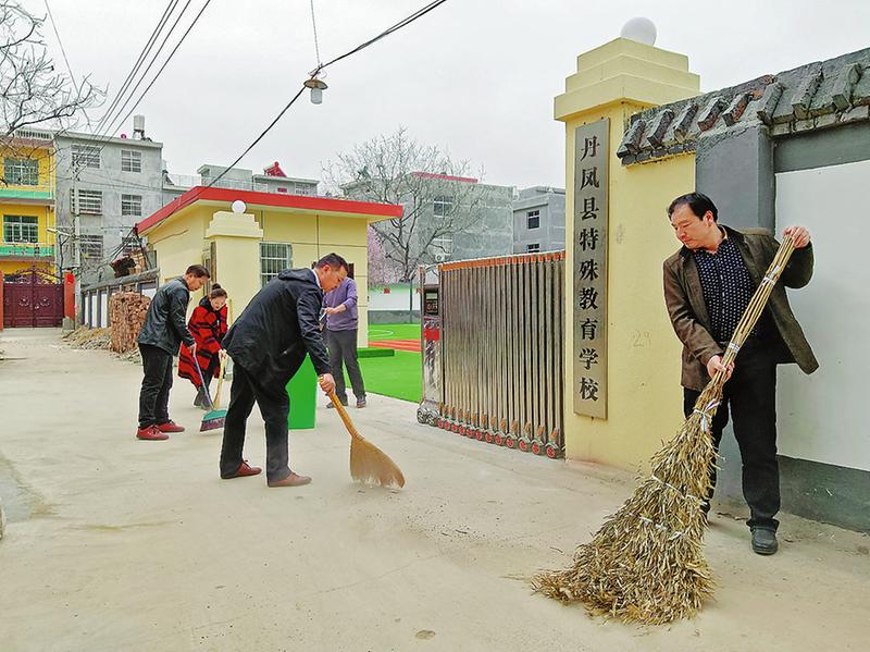 3月15日,丹鳳縣特殊教育學校教職工在清掃校園周邊衛生環境,為周邊群眾自覺維護良好的衛生環境起到帶頭宣傳作用。據了解,丹鳳縣特殊教育學校是丹鳳縣新成立的一所學校,將為全縣200多名特殊兒童提供優質的教育保障。