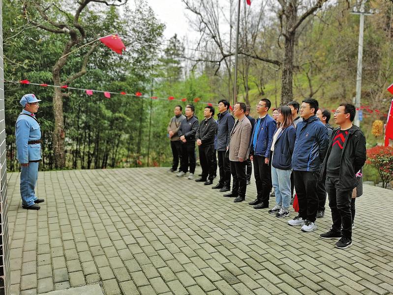 4月10日,洛南縣政府辦公室黨支部組織全體黨員干部來到商州區北寬坪紅色教育基地,深入開展主題黨日活動,緬懷革命先烈,重溫入黨誓詞,傳承紅色基因,進一步激發黨員干部干事創業熱情。(姚渤潮攝)