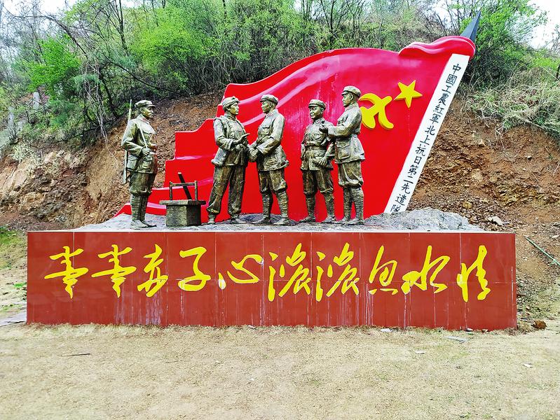 高耀鎮龍河村鐵鎖關的紅二十五軍紀念雕像