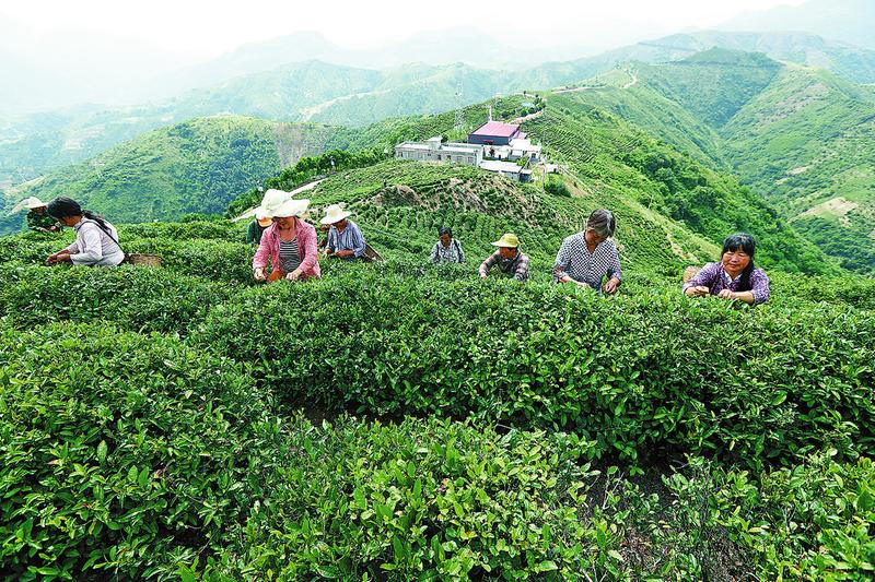 2017年6月15日,山陽縣蓮花茶園。近年來,商南、山陽、鎮安、丹鳳大力發展茶產業,有力帶動了群眾脫貧致富奔小康步伐。