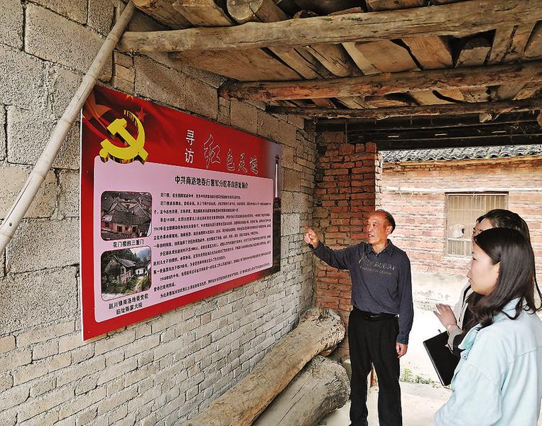 兩位老紅軍曾經在這里駐扎了很長時間,他們的記憶很清晰,對這一帶比較了解,他們給趙尚平提了一點建議:這個地方應該通過政府掛個牌子加以保護,由政府來監督管理這一帶的革命舊址。于是,2014年,花門樓的展板掛了起來,這個地方也就順理成章地成為革命后輩探訪紅色印記的必經之地。