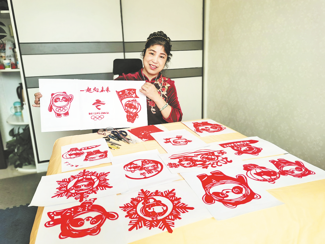 “如今,北京冬奧會賽事正熱,將剪紙作品與冬奧會冰雪運動相結合,為北京冬奧會 獻 禮 添福!”看著制作完成的剪紙,王曉娥開心地說。