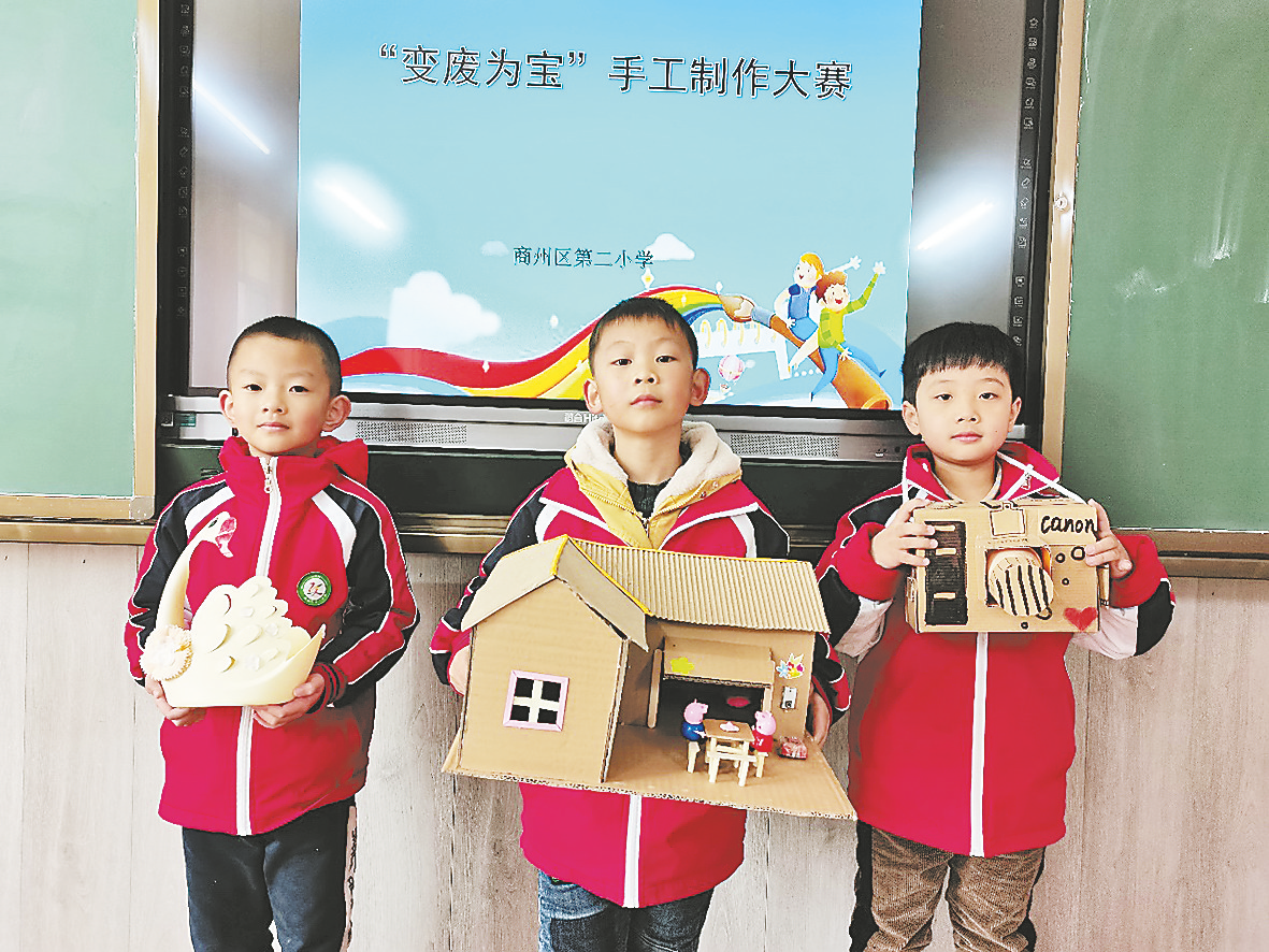 據了解,近幾年商州區第二小學通過主題班會、教師培訓會、家長會等形式宣傳教育垃圾分類的好處,在“變廢為寶”手工制作大賽中,學校所有美術組老師指導學生利用廢舊紙箱、飲料瓶、水管等廢棄物品制作相機、樓房、火箭、坦克、飛碟等手工作品,賽后將300多名學生的獲獎作品集中在學校展出。“我們向學生與家長發出垃圾分類倡議書,讓孩子把垃圾分類知識帶回家。”龍棟良說,每次活動的開展,都得到了全校學生的積極響應,不僅提高了他們的資源保護意識,還使他們從小養成勤儉節約、垃圾減量、低碳環保的行為習慣,形成“教育一個孩子、影響一個家庭、帶動一個社區、引領整個社會”的良好社會氛圍。