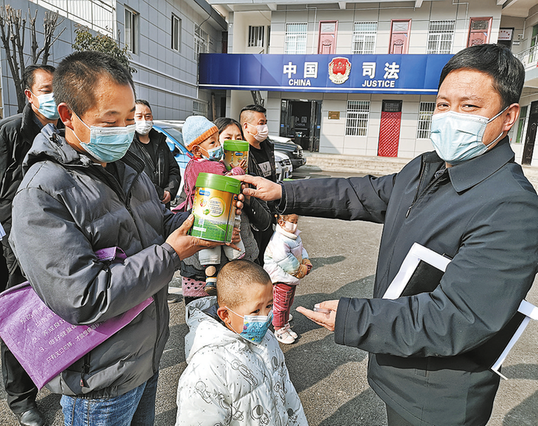 為緩解困難家庭生活壓力,結合全縣進村入戶“三送”活動,1月12日,丹鳳縣婦聯攜手陜西省婦兒基金會,為蔡川鎮困難群眾捐贈價值9.24萬元的美贊臣二段奶粉50箱。 (本報通訊員 張佳琳 攝)