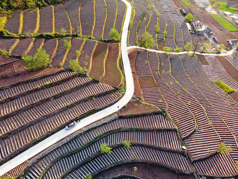 田園綜合體是盤活鄉(xiāng)村資源、打造特色農(nóng)業(yè)的重要載體。近年來,鎮(zhèn)安縣依托當?shù)貎?yōu)越的自然生態(tài)環(huán)境,以土地流轉為抓手,加強基本煙田規(guī)劃與保護,實行以烤煙為主、烤煙與特色農(nóng)作物的輪作模式,推動“煙葉強、煙農(nóng)富、煙區(qū)美”烤煙產(chǎn)業(yè)田園綜合體建設。圖為鎮(zhèn)安縣鐵廠鎮(zhèn)烤煙田園綜合體覆膜農(nóng)田似“大地指紋”,非常壯觀。 (本報通訊員 陳緒榮 攝)