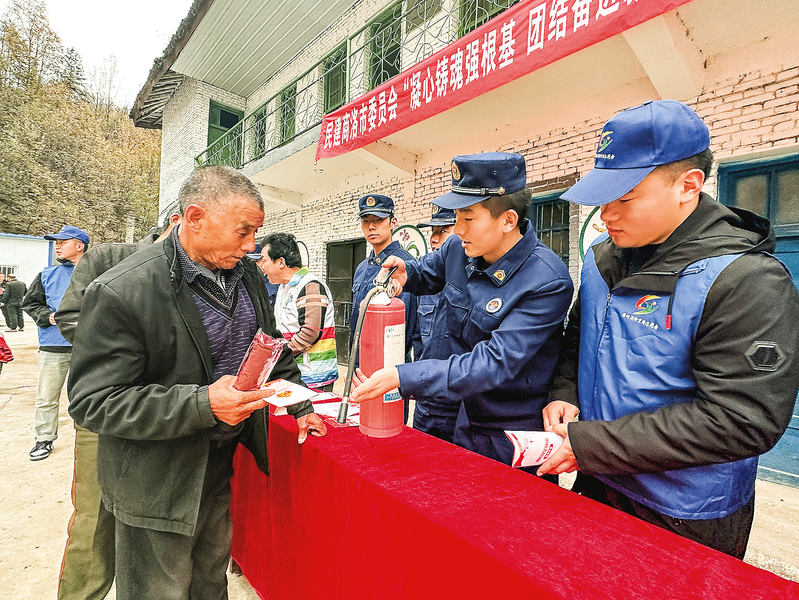 11月7日,商州區消防救援大隊走進牧護關鎮松溝社區,開展消防知識宣傳進農村活動,增強村民消防安全意識,筑牢農村消防安全防線。(本報見習記者 楊 萌 攝)