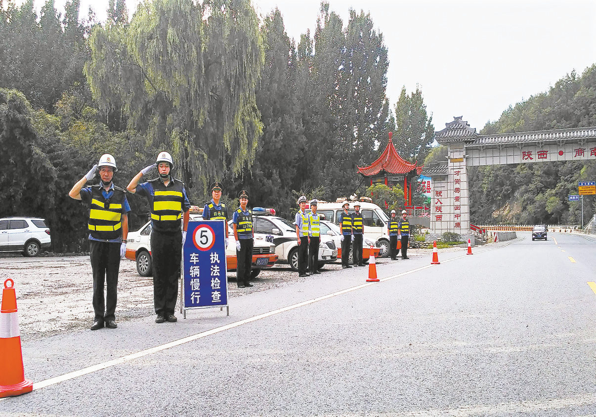 執(zhí)法人員在商南縣陜?cè)ナ〗鐖?zhí)勤點(diǎn)開(kāi)展路政執(zhí)法