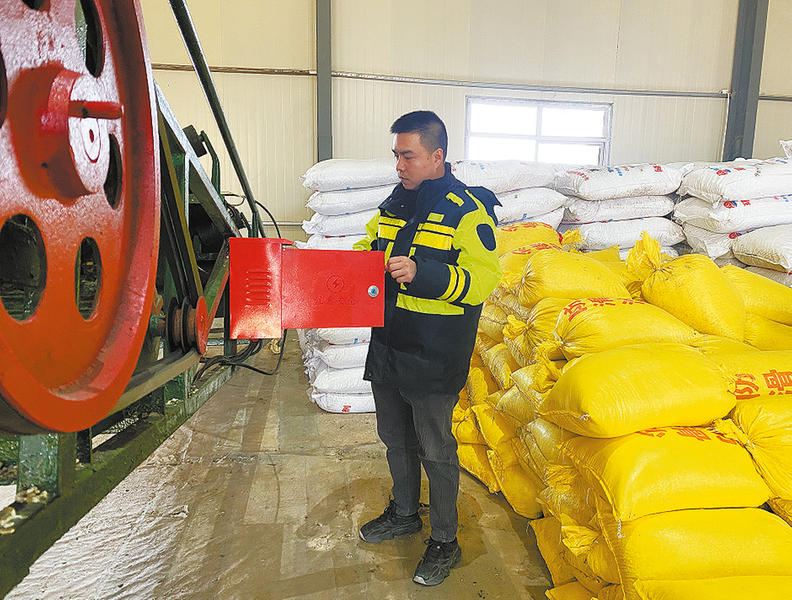 2月11日,養護工作人員李天寵在庫房檢查傳輸帶運作情況。