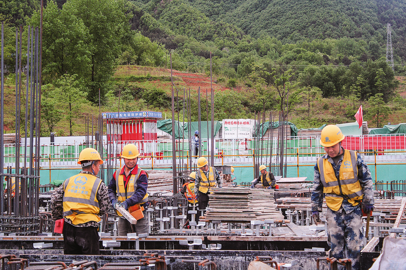 5月13日,西十高鐵陜西段XSZF-1標段項目山陽站,工人在忙碌進行鋼筋綁扎。