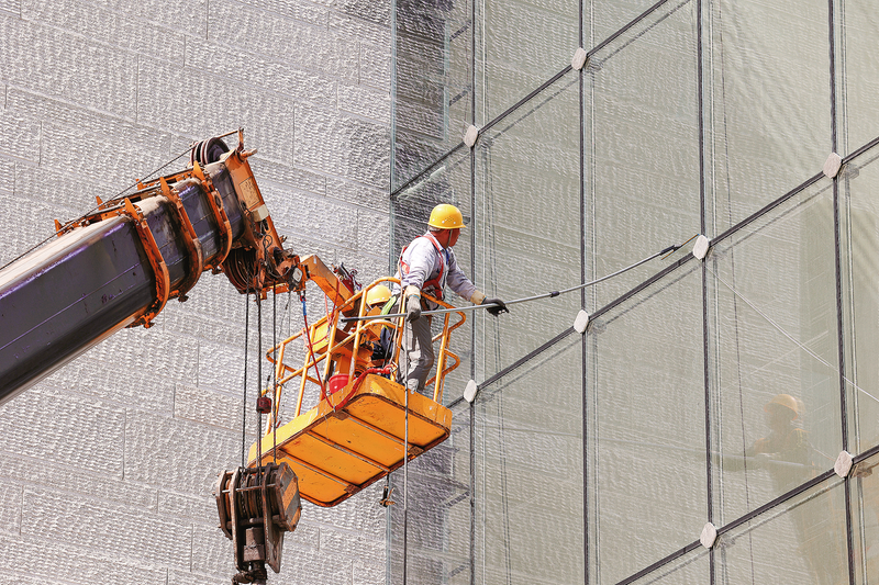 為了保證秦嶺博物館按時開館,施工方加快進度趕工期。圖為5月14日工人開展高空作業,清洗玻璃幕墻。